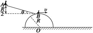 ,小明在A点以v0速度下滑时恰好能够从半球顶端B水平飞出落在水平地面上的C点(图中未标出),求速度v0的大小及O、C间的距离xOC 。