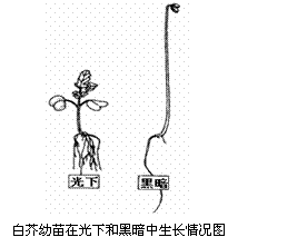 4.外界环境影响着植物的生长发育,其中以光影响最大。如图所示白芥幼苗在光下和黑暗中生长情况,结合所学知识点判断下列分析错误的是