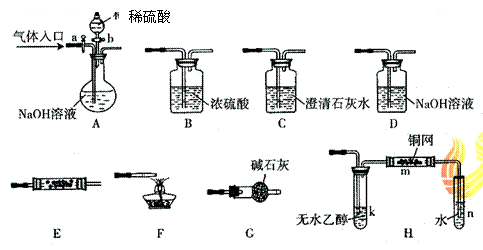 (1)若气体入口通入CO和CO2的混合气体,E内放置CuO,选择装置获得纯净干燥的CO,并验证其还原性及氧化产物,所选装置的连接顺序为 (填代号)。能验证CO氧化产物的现象是 。