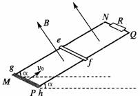 如图所示,两根平行金属导轨MN、PQ相距为d=1.0m,导轨平面与水平面夹角为α=30°,导轨上端跨接一定值电阻R=16Ω,导轨电阻不计,整个装置处于与导轨平面垂直且向上的匀强磁场中,磁感应强度大小为B=1.0T。一根与导轨等宽的金属棒矿垂直MN、PQ静止放置,且与导轨保持良好接触。金属棒质量m=0.1kg、电阻r=0.4Ω,距导轨底端S1=3.75m。另一根与金属棒ef平行放置的绝缘棒gh长度也为d,质量为
