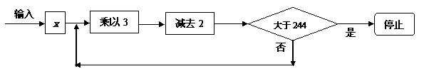 规定:程序运行到“判断结果是否大于244”为1次运算,若x=5,则运算进行( )次才停止。