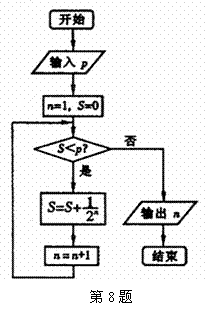 8、执行右边的程序框图,若p=0.8,则输出的n=( ).