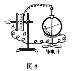 22.如图8所示是探究影响平行板电容器电容大小因素的实验装置。