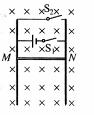 、足够长的平行光滑金属导轨固定在位于竖直平面内的绝缘板上,导轨所在空间存在磁感应强度B=0.50T的匀强磁场,磁场方向跟导轨所在平面垂直。一根导体棒MN两端套在导轨上与导轨接触良好,且可自由滑动,导体棒的电阻值R=l.5Ω,其他电阻均可忽略不计。电源电动势E=3.0V,内阻可忽略不计,重力加速度g取10m/s2。当S1闭合,S2断开时,导体棒恰好静止不动。
