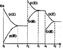 2NO2(g);△H>0。该反应的反应速率(v)随时间(t)变化的关系如右图所示。若t2、t4时刻只改变一个条件,下列说法正确的是(填选项序号) 。