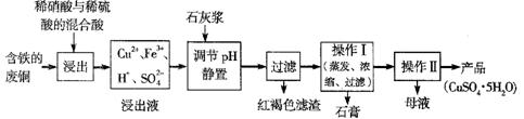 ⑴以下是某工厂用含铁的废铜为原料生产胆巩(CuSO4·5H2O)的生产流程示意图: