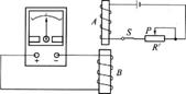 首先按右上图接线,以查明电流表指针的偏转方向与电流方向之间的关系;当闭合S时,观察到电流表指针向左偏,不通电时电流表指针停在正中央.然后按右下图所示将电流表与副线圈B连成一个闭合回路,将原线圈A、电池、滑动变阻器和电键S串联成另一个闭合电路则: