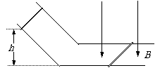 (8分)如图所示,有两根平行导轨,导轨的前段是倾斜的,后段是水平的,导轨的水平段处于竖直向下的匀强磁场B中。有两相同的金属圆杆,杆长为L,电阻为R,质量为m,一根静止地放在水平导轨上,另一根放在距水平导轨高为h的斜轨上,从静止开始释放。设导轨足够长,不计杆与导轨的摩擦。求: