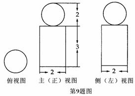 (上海市松江区2010年4月高考模拟文科)右图是一个几何体的三视图,根据图中数据,可得该几何体的体积是 ▲