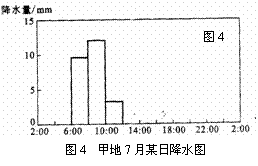 (1) 甲地(见图3,图4)某日的降水类型可能为_____________(2分)。