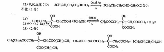 73、(哈尔滨三中、东北育才、大连育明、天津耀华2010年四校第一次联考,38)柠檬酸三丁酯(TBC)是绿色环保的增塑剂,应用极其广泛,它的结构式如左下图,