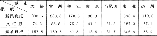 下表表示上海出版的三家报纸在部分邻近城市的影响统计表(单位:报纸分数/万人)。)假如你要选择三家报纸中的一家投放某品牌保暖内衣的广告,你将会选择![]()