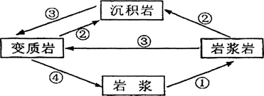 读“岩石图物质循环示意图”,回答2-3题。![]()