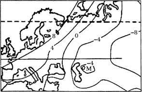 气温距平(单位:°C)是指某地气温与同纬度平均气温之差。读“亚欧大陆部分地区某季节气温等距平线图”,回答6-7题。![]()