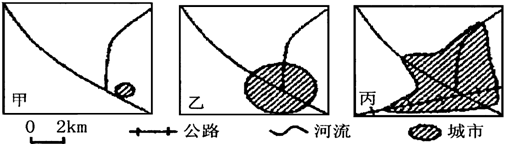 下图表示某区域的三个发展阶段。关于该区域从甲发展到丙地理环境变化的说法,正确的是