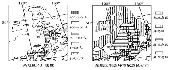 C.人口密度大于400人以上的地区多为生态环境极危急区