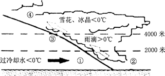 (2)以下四幅为大气垂直方向上的温度结构示意图,与冻雨形成一致的是(填选项字母) 。(2分)
