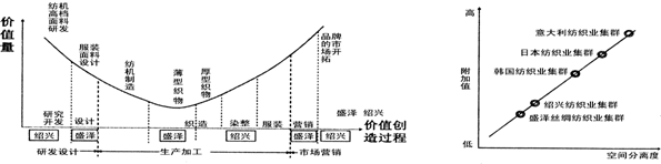 (2)读左图,与盛泽相比,绍兴集群在纺织服装产业价值链中的优势明显,主要表现在