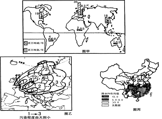 (1)读图甲、图乙分析欧洲北部酸雨危害严重的原因 。(2分)
