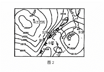 读亚洲局部区域某时刻海平面等压线分布图(单位:hPa),回答3-5题.