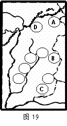 读山西省煤炭基地分布示意图,(图19)判断40-42题