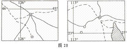 甲乙两图分别是我国两个省会城市附近的局部地区示意图,(图20 )请回答43-44题
