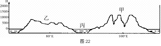 46.(16分)读 “沿20ºN所做的地形剖面图”,(图22)回答下列问题