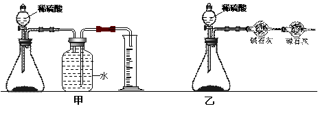 (1)若用图甲中的收集装置,则所测CO2气体的体积________(填“偏大”、“偏小”、“不变”),理由是 ,你的改进措施是 。