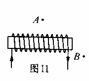 32(09河南)有一通电螺线管,电流方向如图ll所示,请分别画出经过A点和B点的两条磁感线。