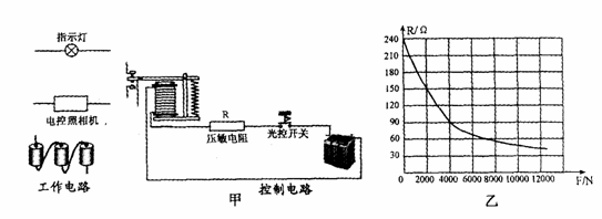 39(09绍兴)小敏设计了一种“闯红灯违规证据模拟记录器”,如图甲,拍摄照片记录机动车辆闯红灯时的情景。