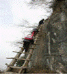 15(09江西)如图1所示,是山区的孩子们在攀登木制云梯上学的情景.当他们以相同的速度同时往云梯顶端上爬时,他们之间是相对 的,他们相对于地面是 的.