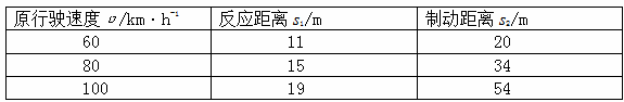 下表是一个机警的司机驾驶一辆保养得很好的汽车,在干燥的水平公路上以不同的速度行驶时,测得的反应距离和制动距离。