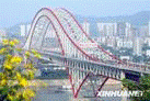 26 (09重庆)2009年4月29日,创下多项世界第一的重庆朝天门长江大桥正式通行(如图15)。大桥主桥长932米,全桥永久用钢达到国内创纪录的4.6×107kg。