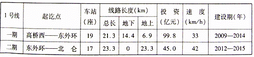 28 (09宁波)轨道交通具有便捷、运量大、污染低、安全性高等优点,有利于减缓城市交通拥挤、减少汽车尾气排放等。宁波市轨道交通工程l号线已开始建设,其部分信息如下表所示: