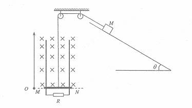的物体静止在倾角θ=30°的光滑斜面上,并通过轻质光滑定滑轮和绝缘细绳与金属相连接。当金属棒沿
