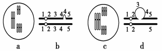 34、某些类型的染色体结构和数目的变异,可通过对细胞有丝分裂中期或减数第一次分裂时期的观察来识别。a、b、c、d为某些生物减数第一次分裂时期染色体变异的模式图,它们依次属于 ( )