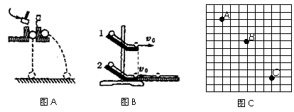 (3)丙同学利用频闪照相的方法,获取了做平抛运动小球的部分照片,如图C所示。图中背景是边长为5cm的小方格,A、B、C是摄下的三个小球位置,闪光的时间间隔为0.1s。小球抛出的初速度为 m/s。