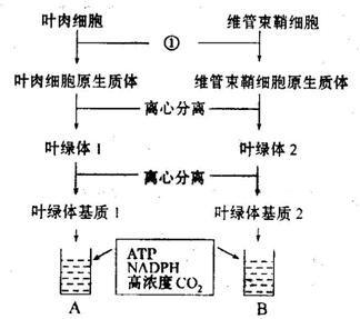 (22分)科学家们发现C4植物合成淀粉的部位是维管束鞘细胞,叶肉细胞中不能合成淀粉的原因是缺少暗反应所必需的三羧酸酶系。请根据下面的部分实验图解分析回答问题: