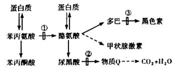 A题.下图为人体内苯丙氨酸与酪氨酸的代谢途径,图中的数字分别代表三种有关的重要酶。