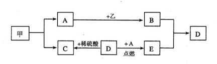 12.下图所示为初中化学常见的一些物质间的转化关系(有些条件已省略)。已知常温下甲为液体,乙和E均为黑色固体,B是气体。请分析后作答: