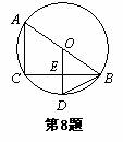 如图,AB是⊙O的直径,BC是弦,OD⊥BC于E,交于D。请写出两个不同类型的正确结论:(1)