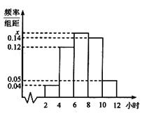 某校为了解高三同学寒假期间学习情况,抽查了100名学生,统计他们每天平均学习时间,绘成频率分布直方图(如图)。则这100名同学中学习时间6~8小时的人数为