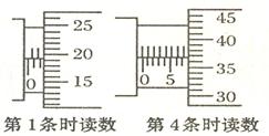 分划板的中心刻线分别对准第1条和第4条亮纹的中心时,手轮上的读数如下图所示,则对准第1条时读数x1= mm、对准第4条时读数x2= mm,相邻两条亮纹间的距离△x= mm,光的波长为 mm。