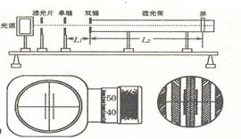 (8分)用双缝干涉测光的波长。实验装置如下图所示,已知单缝与双缝间的距离L1=60mm,双缝与屏的距离L2=700mm,单缝宽d1=0.10mm,双缝间距d2=0.25mm。用测量头来测量光屏上干涉亮条纹中心的距离。测量头由分划板、目镜、手轮等构成,转动手轮,使分划板左右移动,让分划板的中心刻线对准屏上亮纹的中心,记下此时手轮上的读数,转动测量头,使分划板中心刻板对准另一条亮纹的中心,记下此时手轮上的读数。