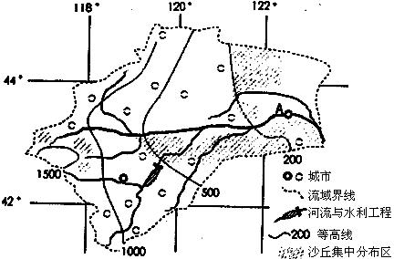 材料一:该河段水系流域面积约13万km2,流域内平均降水量为375.3mm/年。历史上的辽金时期这里曾经水草丰美、牲畜兴旺,现在该地不仅为重要的农业区,同时矿产也得到进一步开发。近20年以来,该河流多次出现断流现象。