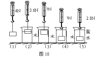 13.在探究“影响浮力大小的因素”这一问题时,年级“物理兴趣小组”的同学做了如图10所示的一