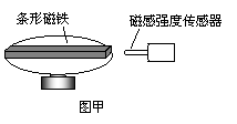 7、.某同学在实验室里熟悉各种仪器的使用,他将一条形磁铁放在转盘上,如图甲所示,磁铁可随转盘转动,另将一磁感强度传感器固定在转盘旁边,当转盘(及磁铁)转动时,引起磁感强度测量值周期性地变化,该变化与转盘转动的周期一致.经过操作,该同学在计算机上得到了如图乙所示的图像: