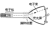 显像管原理的示意图如图所示,当没有磁场时,电子束将打在荧光屏正中的O点,安装在管径上的偏转线圈可以产生磁场,使电子束发生偏转。设垂直纸面向里的磁场方向为正方向,若使电子打在荧光屏上的位置由a点逐渐移动到b点,下列变化的磁场能够使电子发生上述偏转的是