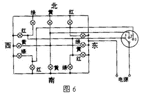 验电路,如图6所示,用模拟十字路口的红绿灯控制。请你认证分析后填空;