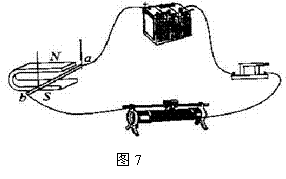12.如图7所示,当开关闭合时,到线ab向外摆